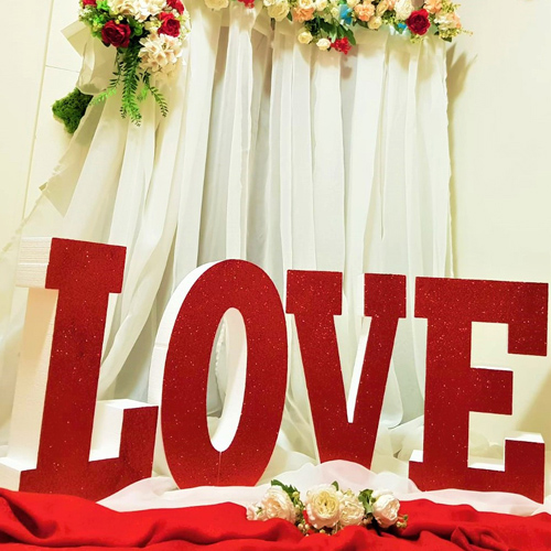 207.LOVE - set (4 litere) sclipici Rosu , lateral si spate Nevopsite ( albe )