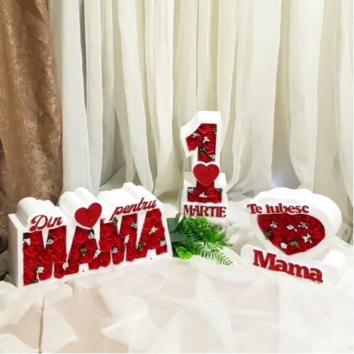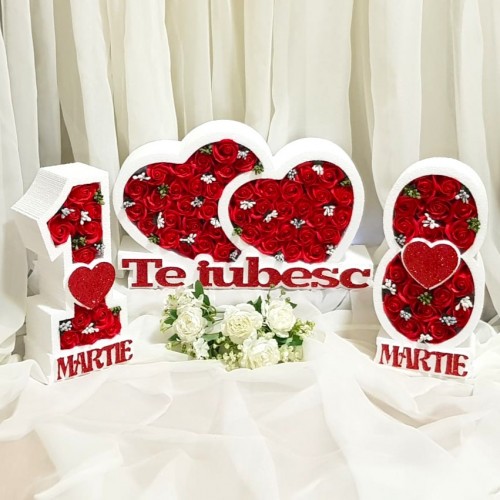 8 Martie * La multi ani - Inima NEW (Tip 2) mare * ARANJAMENTE Trandafiri de Sapun
