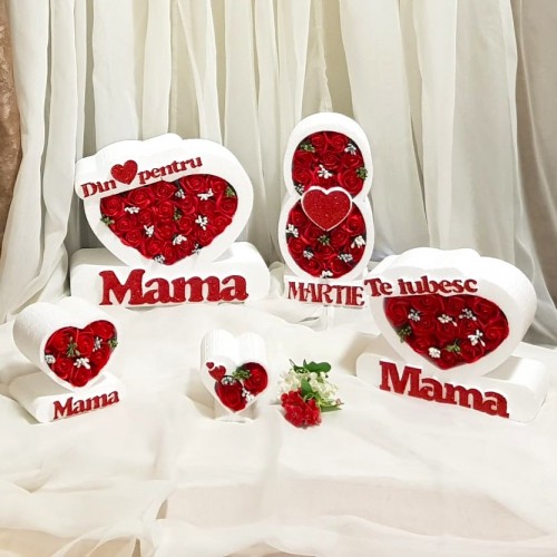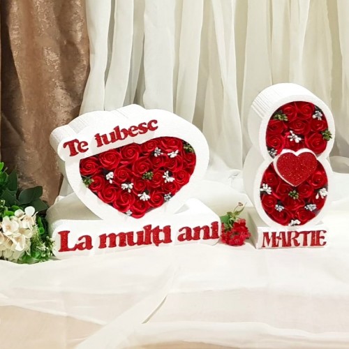 8 Martie * La multi ani - Inima NEW (Tip 2) mare * ARANJAMENTE Trandafiri de Sapun
