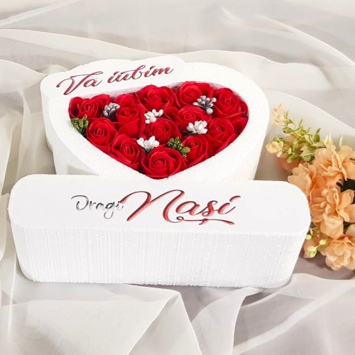 333.Inima * Te iubim - Dragul nostru Nas (Rosu) * ARANJAMENTE Trandafiri de Sapun