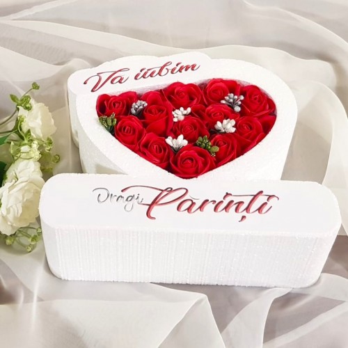 256.Inima * Va iubesc - Dragii mei Parinti (Rosu) * ARANJAMENTE Trandafiri de Sapun