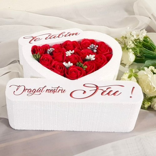 336.Inima * Te iubim - Dragul nostru Fiu (Rosu) * ARANJAMENTE Trandafiri de Sapun