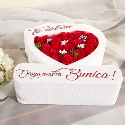 338.Inima * Te iubim - Draga noastra Bunica (Rosu) * ARANJAMENTE Trandafiri de Sapun