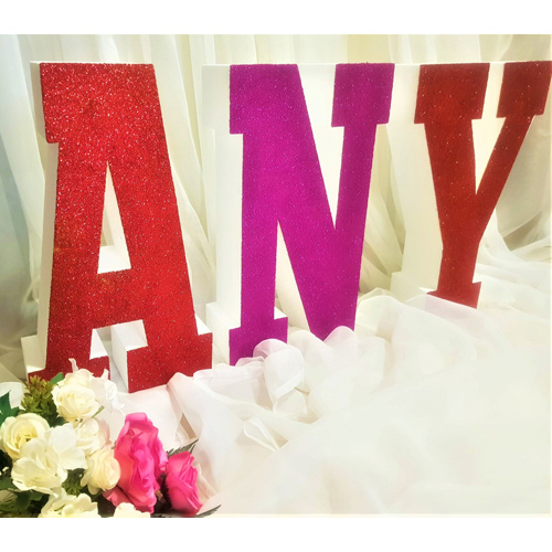 135.Litere Polistiren sclipici COLORATE ( pe fata ) , lateral si spate Nevopsite ( albe )