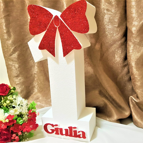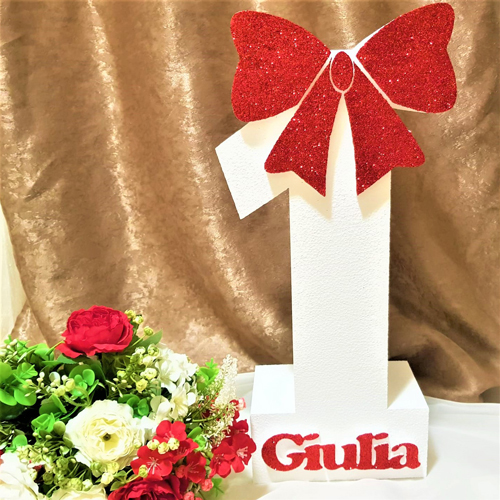 - Model: 211.Cifra Aniversara Alba (fundita + nume sclipici Rosu)