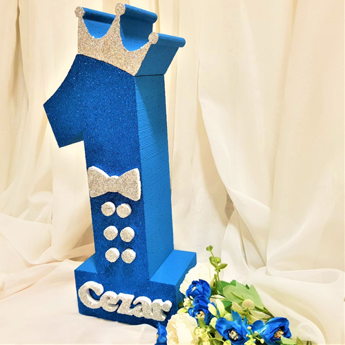 201.Cifra Aniversara Sclipici Albastru (pe fata) , lateral si spate vopsita Albastru (detalii Sclipici Argintiu)