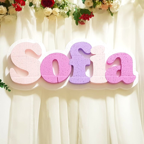 • Model: 197.Nume PANOU cu Suport Alb - Litere nuante Roz