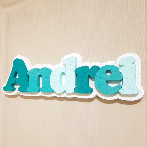 166.Nume PANOU cu Suport Alb - Litere nuante AlbastruGrosime polistiren 3 cmPret 200 lei / NUME..