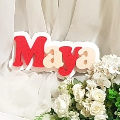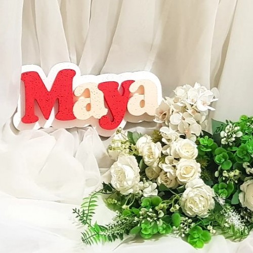 - Model: 122.Nume PANOU cu Suport Alb - Litere Rosu - Piersica