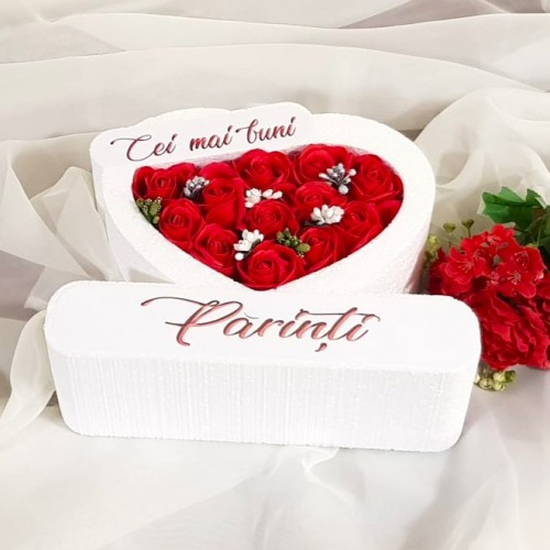 247.Inima * Va iubim - Dragi Parinti (Rosu) * ARANJAMENTE Trandafiri de Sapun