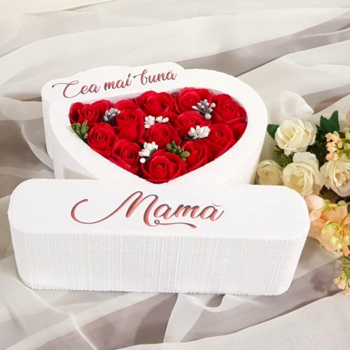 334.Inima * Te iubim - Draga noastra Mama (Rosu) * ARANJAMENTE Trandafiri de Sapun